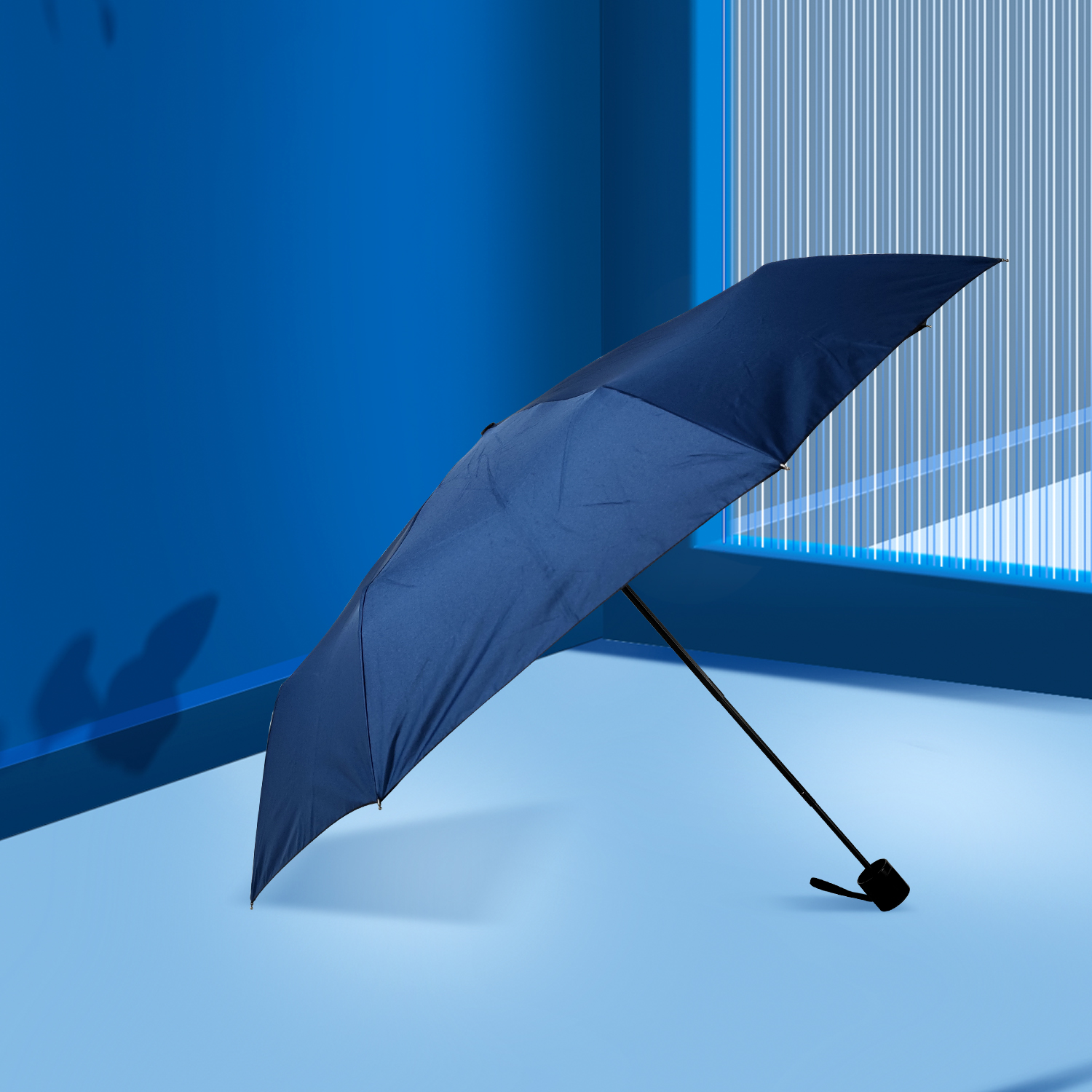 三折手開素色黑膠傘